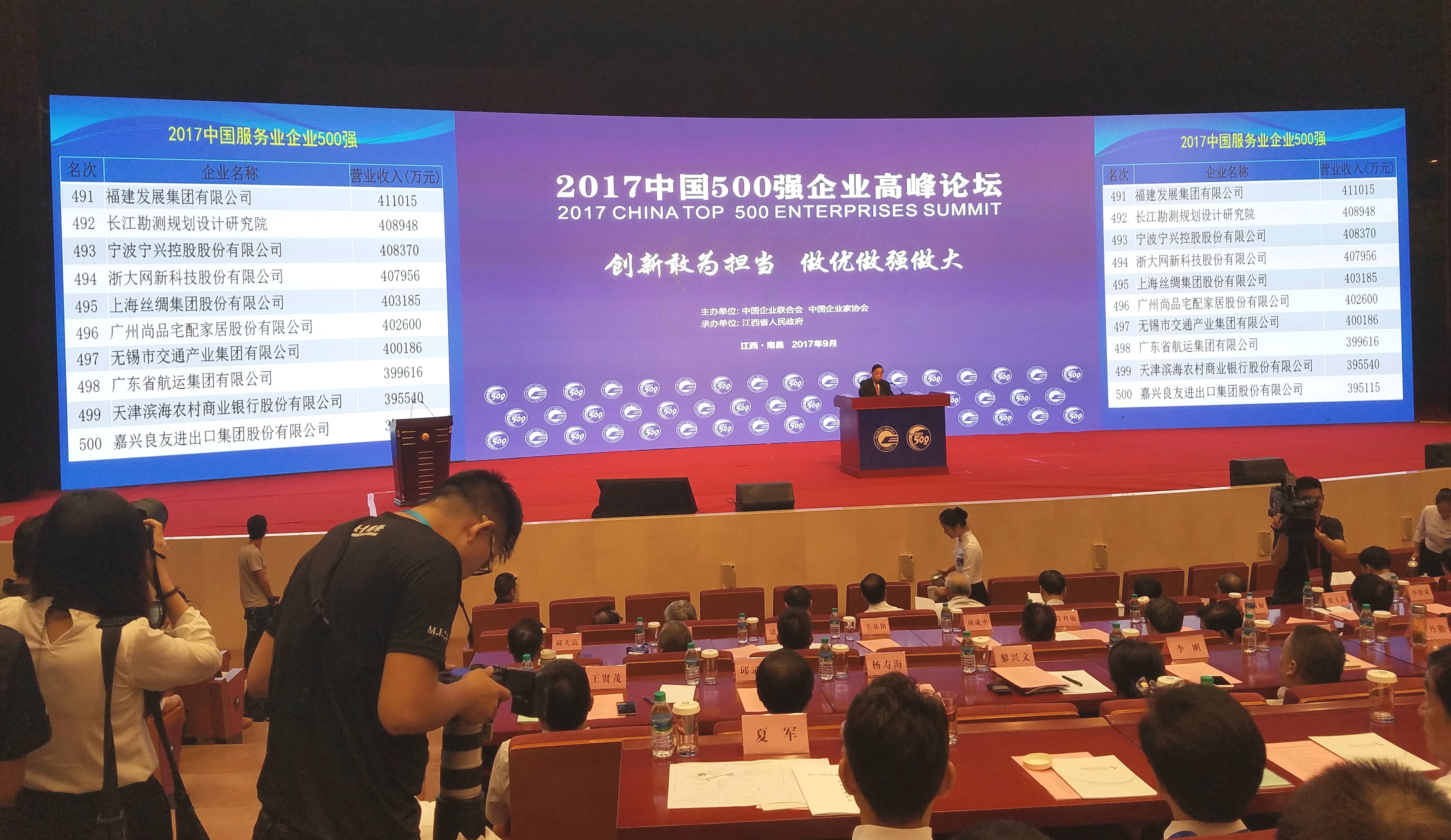 福建发展集团荣获中国服务业500强名单图