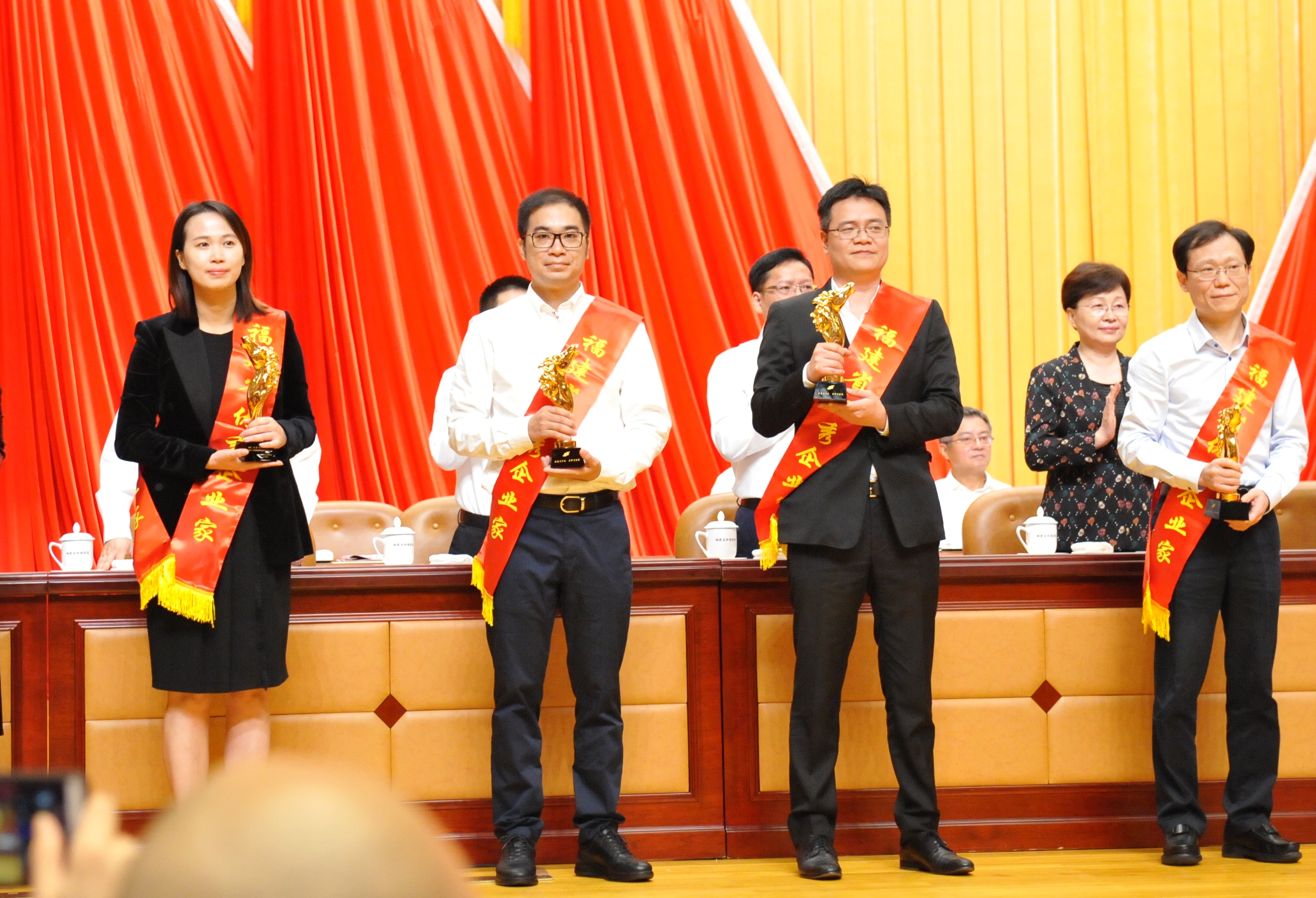 会场气氛热烈,莅临大会领导为第十八届福建省优秀企业家颁授奖杯、徽章和证书。福建省政府副省长郑建闽作了重要讲话。随后,第十八届福建省优秀企业家代表上台发言,宣读《致全省企业家的倡议书》。省企联刘捷明会长作关于2019年工作总结及2020年工作安排及进展情况的报告。