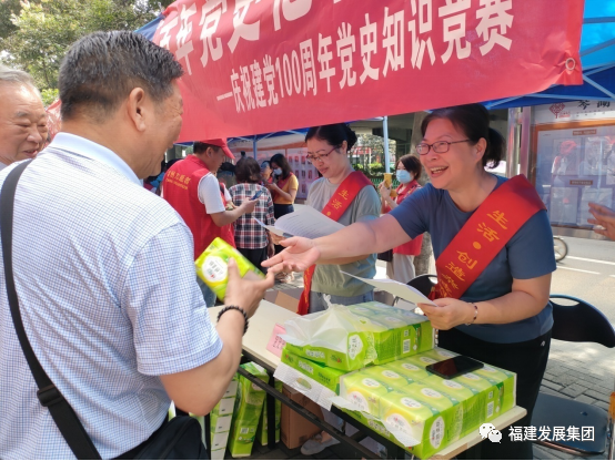 同时党史知识竞赛有奖问答摊位也热闹非凡,现场党员、居民积极参与,一度把现场气氛推向高潮。随后,党员同志们和共建单位在二楼会议室参加由省革命历史纪念馆党史教育宣讲进社区的活动,参加活动的党员通过抢答的方式参加党史知识竞赛,调动了党员学习的积极性,现场气氛异常热烈。