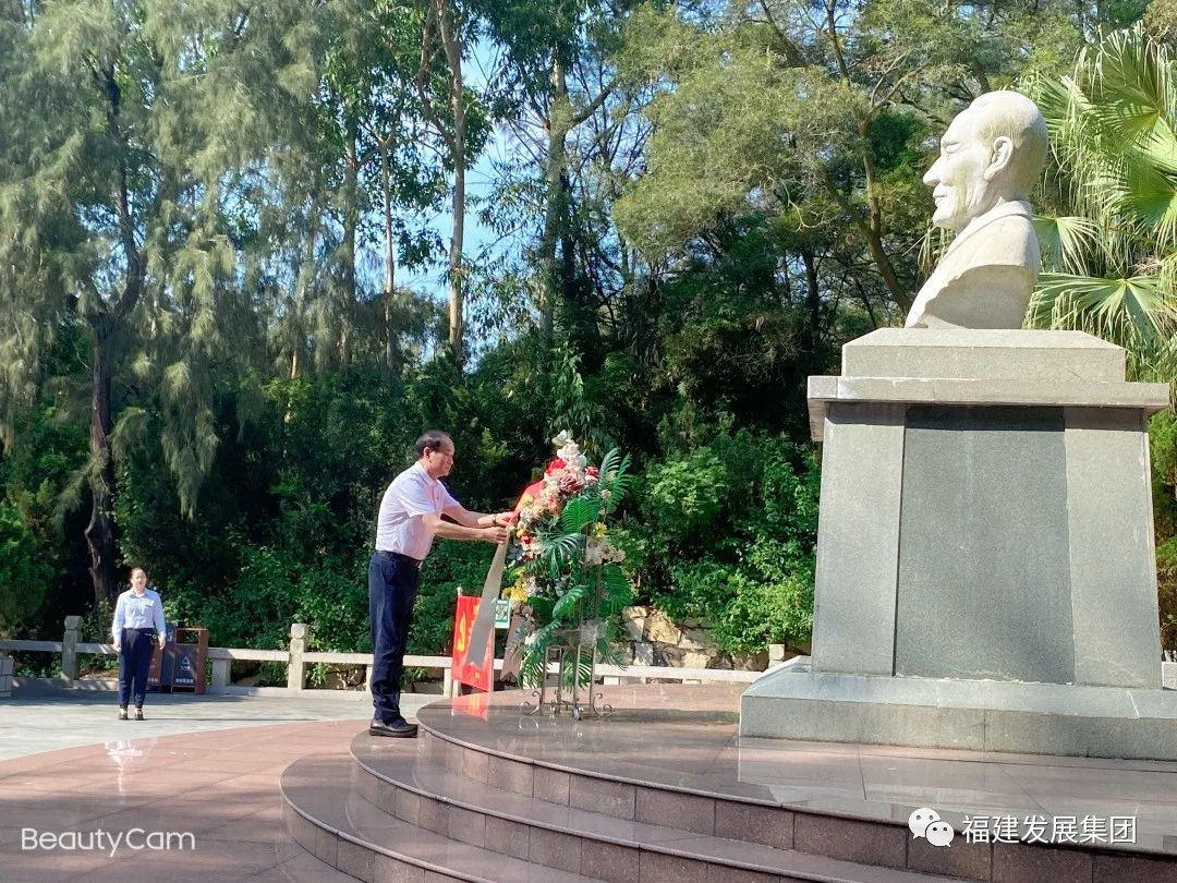 怀着对谷文昌同志的崇敬之情,在谷文昌纪念园,全体人员向谷文昌塑像敬献花篮,并由发展集团党委书记、董事长林成端领誓,举行入党宣誓仪式。